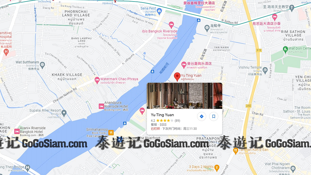 Yu Tingyuan地址:300/1 Charoen Krung Rd, Yannawa, Sathon, Bangkok 10120; Yu Tingyuan电话:020320888; Yu Tingyuan营业时间:午餐11:30–14:30,晚餐18:00–22:30