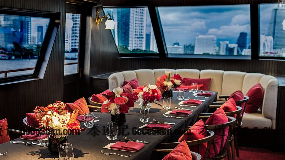 这些“旅游团式”的湄南河晚餐游轮一般很难拿得出手招待友人。Saffron、Manohra这种五星级酒店旗下运营的晚餐游轮差强人意,可以应付一下普通客户。但高端客户夜游湄南河除了包船出行以外(单次价格在5万-15万泰铢),今天小编探店的Pruek Cruise(普鲁克号)也是一个宴请高端客户或招待重要友人的好地方。