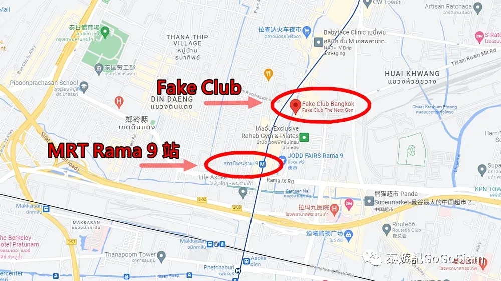 Fake Club在Ratchada路,中国大使馆附近。周边空地很多,随便停车。如果公共交通出行,可以乘坐至MRT Rama 9站。
