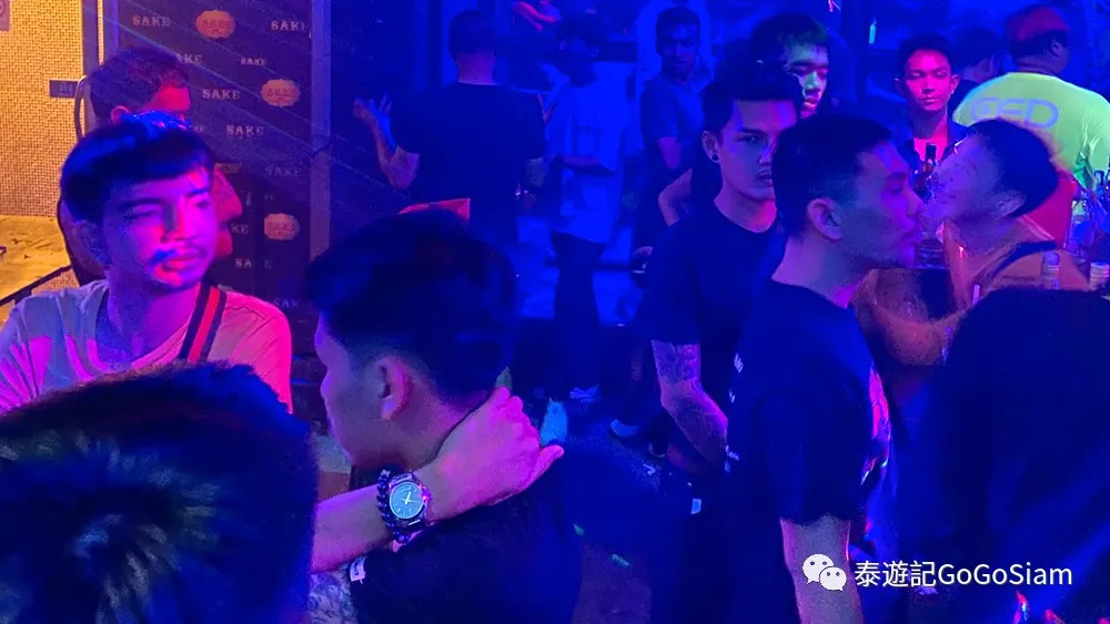 晚上12点之后,Saké Pub现场的服务生便开始上台走秀助兴,场下顾客对于喜欢的泰仔可以倒上一杯酒水,配上100泰铢小费,以资鼓励。