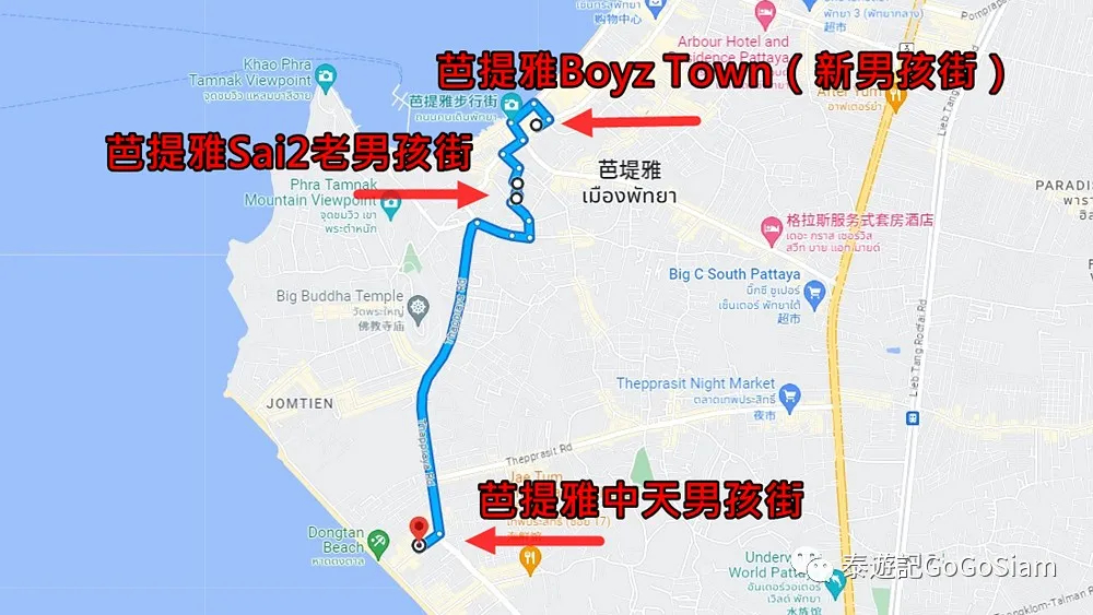 芭提雅的三条男孩街:老男孩街俨然已经败落,位于芭提雅沙滩的新男孩街商业氛围太重。而最为悠然自得的,便是位于中天沙滩边的中天男孩街。(参考阅读 >> 八月芭提雅游记(一)老男孩街:孤魂野鬼,全线倒闭。Covid疫情毁了一切)
