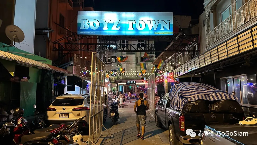 Pattaya Beach的“新男孩街”是正式名字叫做“Boyz Town(บอยส์ ทาวน์)”,位于Pattaya 13/4 Alley。但这并不是简单的一条小巷,在联通的Pattaya 13/3 Alley,亦是成片的同志娱乐按摩或夜店。