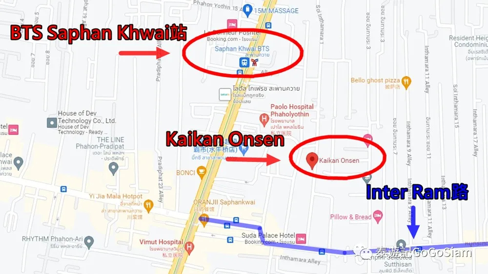 之所以选择Kaikan Onsen,主要是因为Kaikan Onsen靠近Saphan Khwai(三百块)基友娱乐圈。即便探店“崩盘”,也可以随手找个喜欢的老店,点仔按摩。