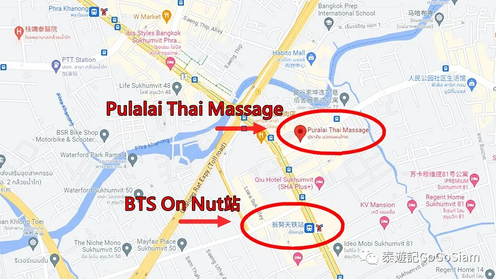 整体而言,Pulalai Thai Massage算是On Nut地区的老牌按摩店。老板经营十余年,招募的技师也以技术主打。Pulalai Thai Massage店铺的地址及地图位置如下,有兴趣的小主们可以自行前往探店。