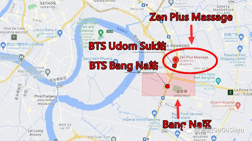 Zen Plus Massage位于Udom Suk BTS天铁口,这里三家按摩店齐聚于此。250泰铢极为廉价的一小时泰仔按摩,Zen Plus Massage装修比另两家略好,所以一小时的泰式按摩略贵一些,300泰铢。