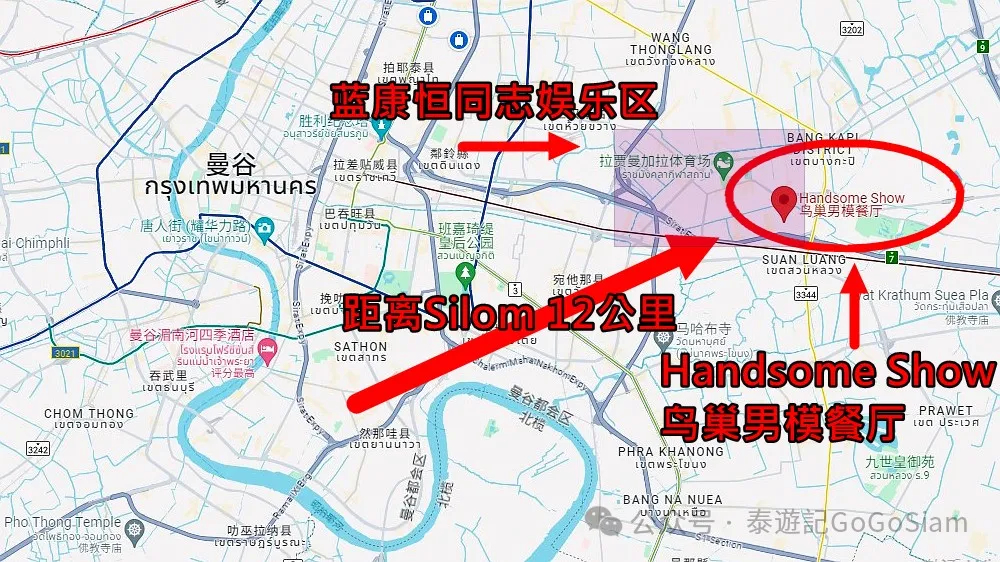 Handsome Show(中文名:鸟巢男模餐厅),中国老板(一般是中国资金,泰国股东代持)东施效颦的杰出代表。略带讽刺,但体现出中华民族“山寨”实力的男模秀新店。店铺位置、地址及联系方式如下,有兴趣的小主们可以实地考察。