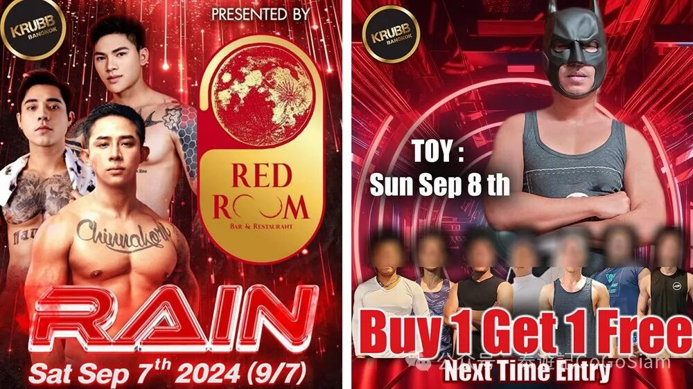 一个是曼谷小有名气的同志桑拿Krubb,一个是泰国夜店新秀Red Room,两家都是活动策划极为出色的同志娱乐聚点。如今强强联手,9月7日晚上8:00联袂推出『Red Room之夜 – Krubb桑拿男模大趴』!Oppps~ 是不是听上去就有点小激动呢?