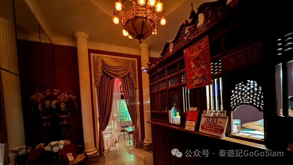 推开BKP Sauna店铺大门,精致的木质隔间里坐着年轻的小哥售卖门票,昏黄的欧式喇叭花吊灯和粉灰色落地隔帘瞬间把人拉到中世纪欧洲的感觉。