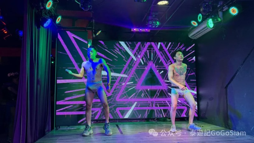 人数不多,大概整个夜场只有七八个泰仔。上台表演的不超过5位,剩余的都是场下陪酒陪乐,跟着客户服务伺候的泰仔。跟Lucas两人,每人点了两杯可乐。一人200泰铢消费,坐了两个小时体验了一晚上The Best Bar的新店节目。价格实在太便宜。