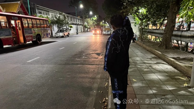 小编先是开车在“泰国内政部 ↔ 鲜花市场”简单溜了一圈。在公交站台、路灯下、或是茂密大树的台阶上,即便是23:00时分,依旧坐着很多年轻泰仔,见到车辆驶来,便会上前搭讪。