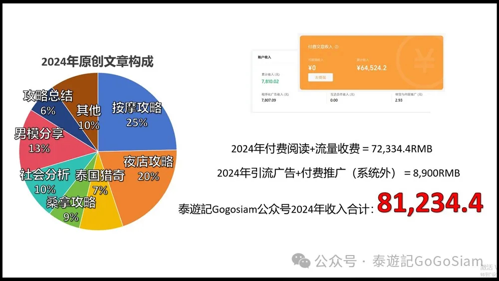 于是,结论便是:考虑上泰国生活公共开销折损计提(全年按6万RMB计算),小编的“同志娱乐”分享平台在2024年净利为22.37万RMB,运营成本为20.9万RMB(14.9万娱乐开销+6万公共开销计提)。