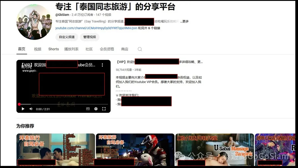 除了公众号,小编的“泰国同志旅游及交友论坛”:同致暹罗Gbsiam.com,以及泰国同志玩乐攻略分享的Youtube会员频道,即便2024年小编三天打鱼、两天晒网,更新及分享时断时续。但依旧得到了诸多粉丝及网友的支持。