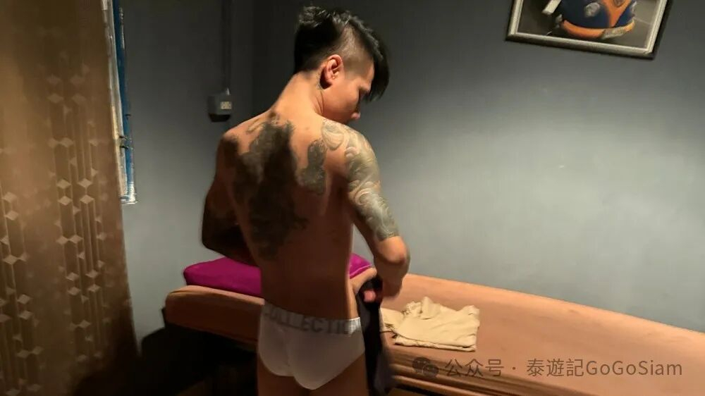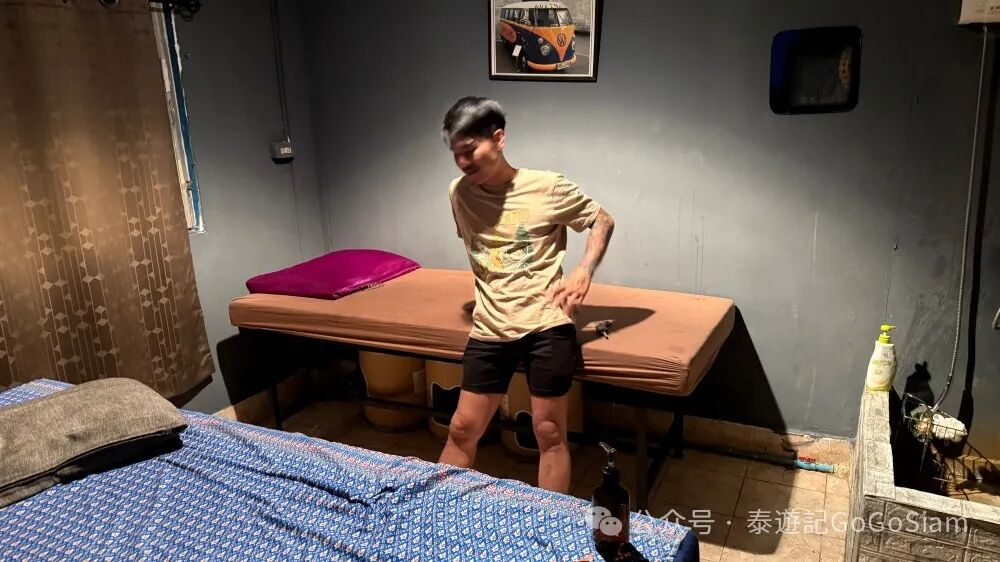 硬着头皮在极为简略的淋浴区域冲洗一下,围着浴巾等待K.Bol技师的服务。大概也就三五分钟,直男风的K.Bol推门而入,三下五除二便直接更衣,毫无遮挡的换了衣服便开始按摩。如此豪放的风格小编也并不排斥。