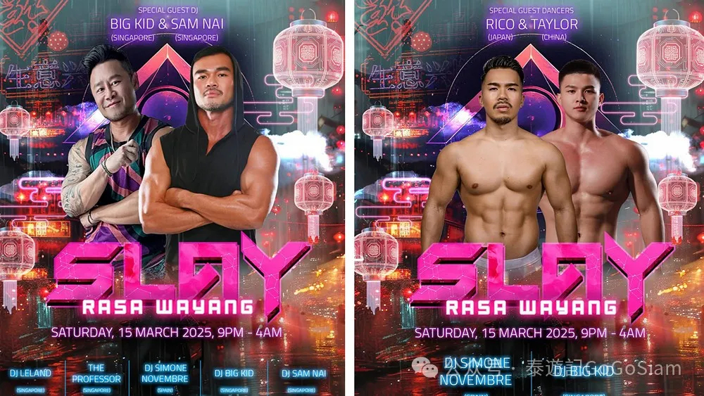 SLAY LA 3月份的活动在新加坡RASA举办,3月15日周六晚上9:00开始,彻夜狂欢至次日凌晨4:00。现场邀请包括Sam Nai、Leland等诸多热门DJ,还有为数众多的男模Gogo、全球名媛现场助兴。看着也会觉得甚是热闹。