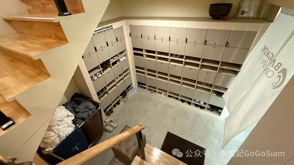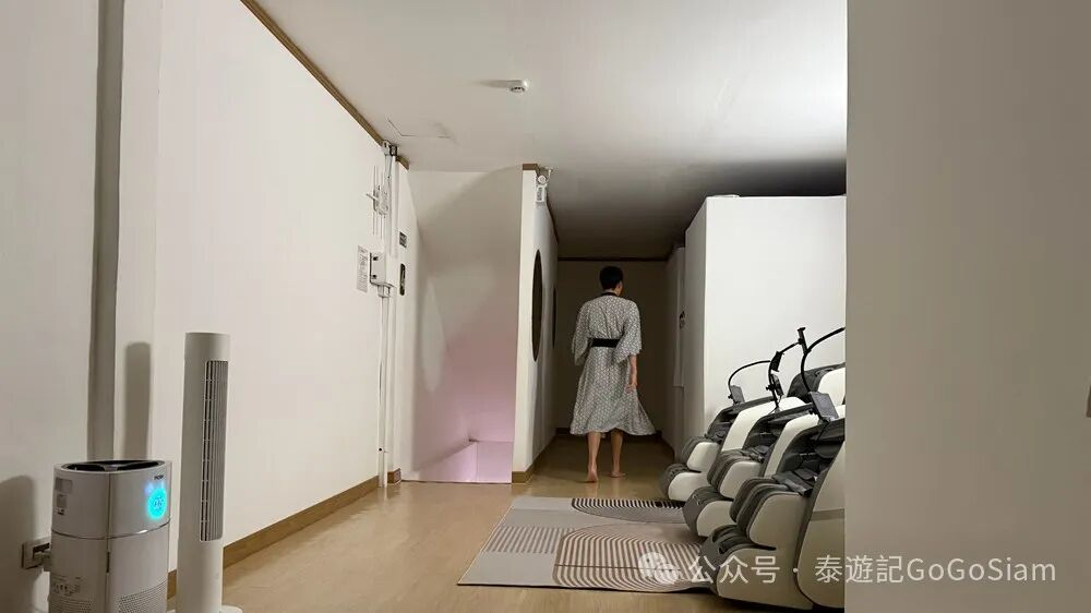 Bangkok Onsen的一楼,是换鞋的橱柜。之后去二楼尽头的右侧,这里可以找到更衣间。之后更衣间一侧的小门,可以通往G Floor的浴室、桑拿及芬兰浴。整体环境都很小,但来来往往现场却有很多清瘦白皙的泰国小哥。