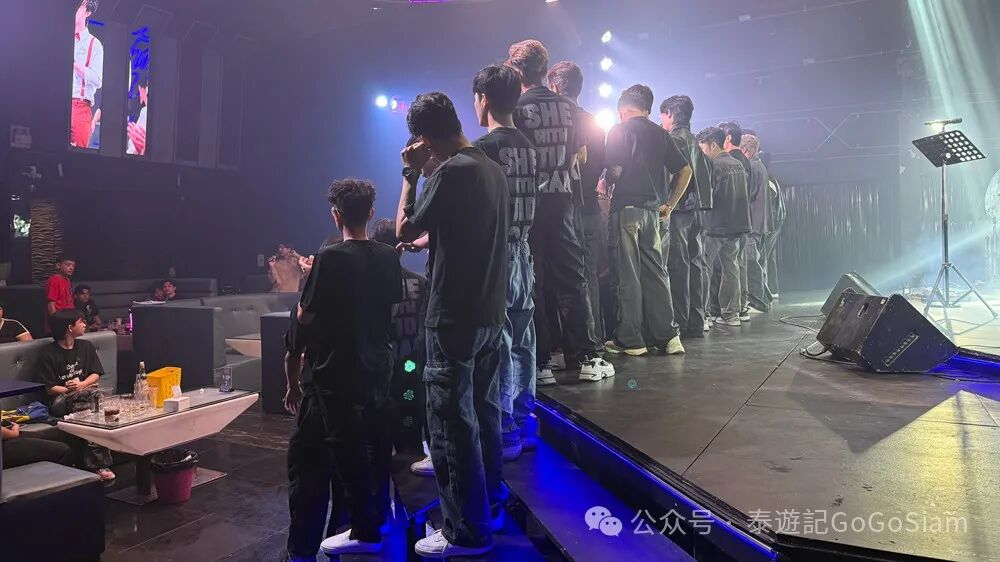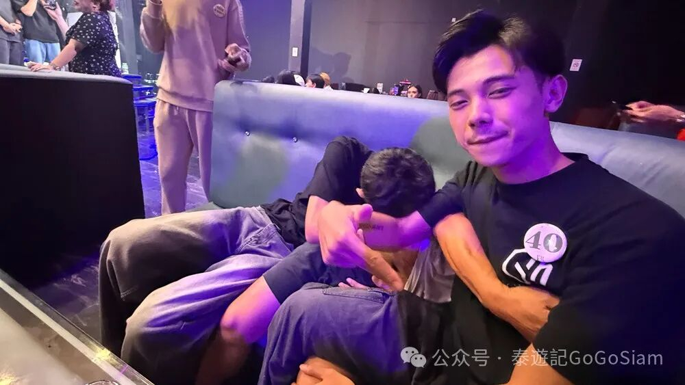 在Host Bar,千万不要急着点仔。若是新店探店,也没必要抢店铺头牌或是网红。那些全场点完,依旧在台上嗷嗷待哺的男模反而服务极好。最后收场的男模通常只需1杯价格(270泰铢)便可点下台来。