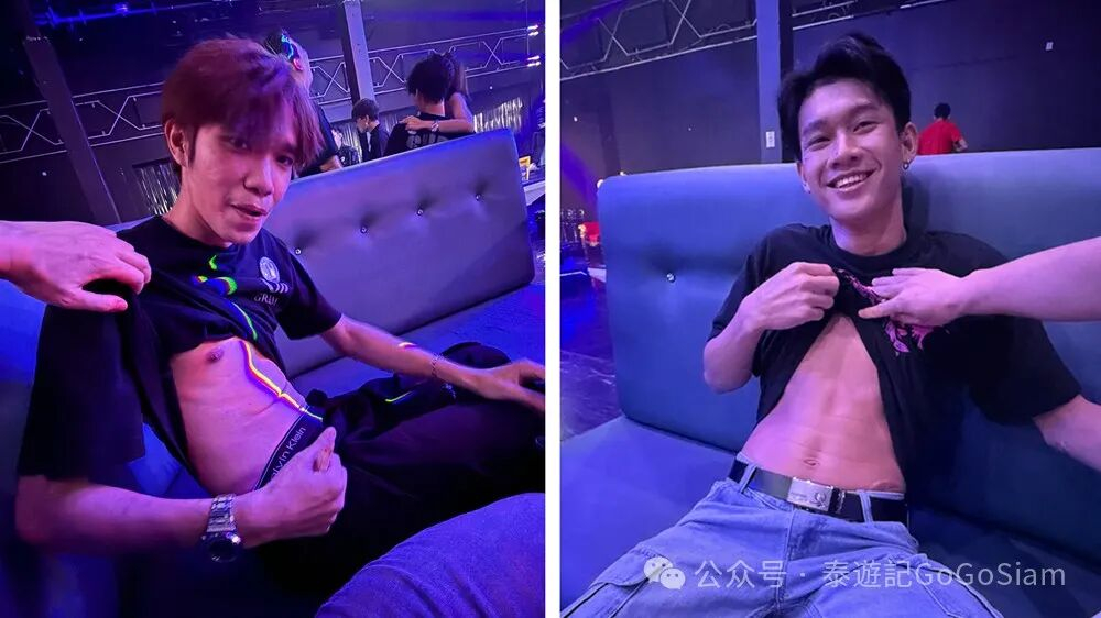 第一批点的两位分别是22岁和25岁,如今曼谷夜场的男模年龄真的不错。左边直男有些闷骚,右边直男玩的挺开。两个都是1杯就定的270泰铢。陪酒的时间1个小时。