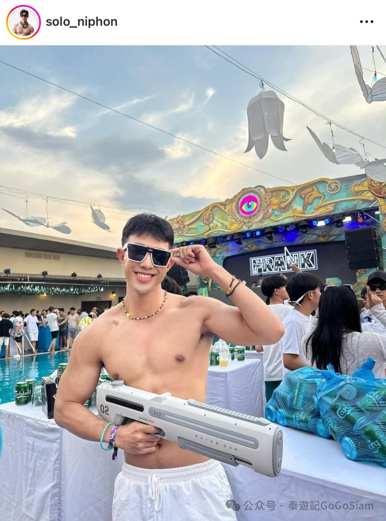 Niphon是老挝人,而且还是老挝Mister International Laos 2024的胜出选手。所以即便泼水节人潮拥挤,Niphon却能远远的脱颖而出!白净的皮肤配上匀称的身材,阳光四溢的笑容让人感觉一切都是美好的。