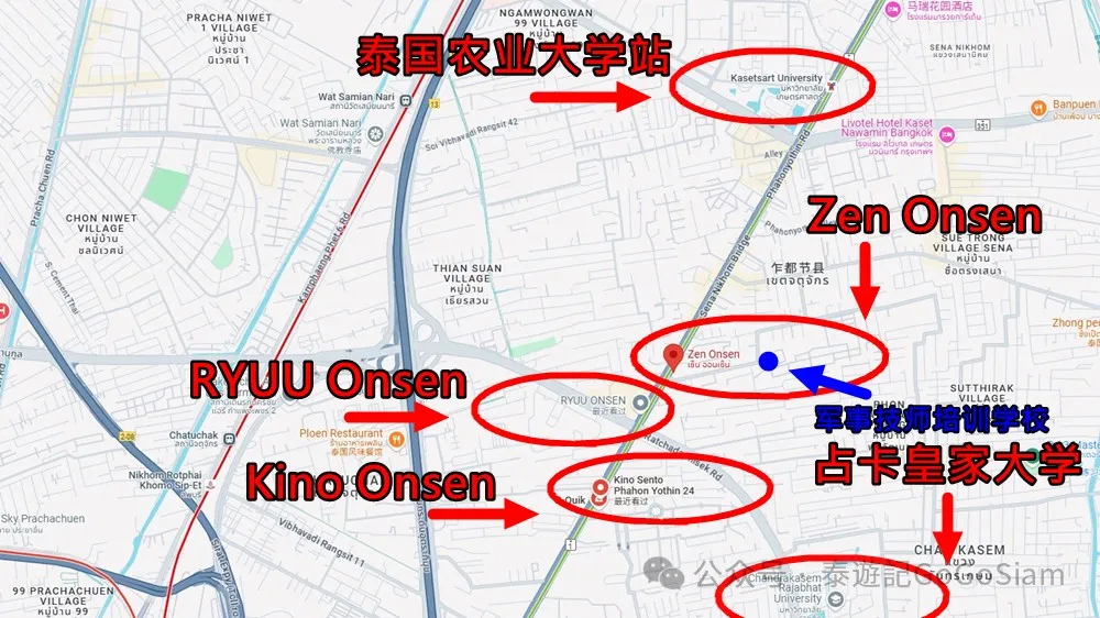 仅仅百米,Kino、Ryuu、Zen Onsen三家同志温泉聚集于此。纵观Ratchayothin周边,泰国农业大学、军事技术培训学校、占卡皇家大学、斯巴顿大学、圣约翰大学等诸多高校云集,御庭(Yothin)同志娱乐区亦成为与蓝康恒(Ramkhamhaeng)同志娱乐区并驾齐驱的两大“高校同志娱乐区”。