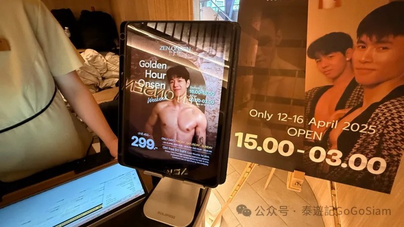 推门而入,一位人妖大姐极为热情。下午入场的价格只要299泰铢/人,即便是泼水节期间,Zen Onsen依旧有Promotion的折扣。小编一行三人,排在三四个学生模样的顾客后面,付款的几分钟,门庭若市,进进出出很多帅哥。