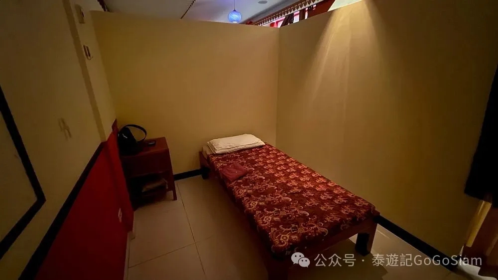 K.Kurn将小编带到二楼,一间私密的按摩房间,没有房门,一张简单的门帘遮出私密空间。米黄色的墙壁,简单的风扇,房间没有密封到屋顶,K.Kurn总喜欢看着小编偷笑。